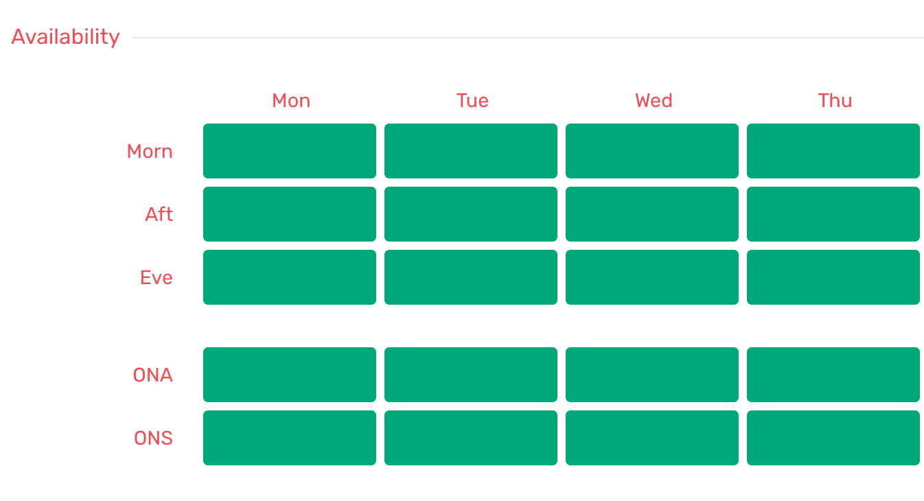 Our availability calendars are easy to complete and you can create a skills list by just clicking