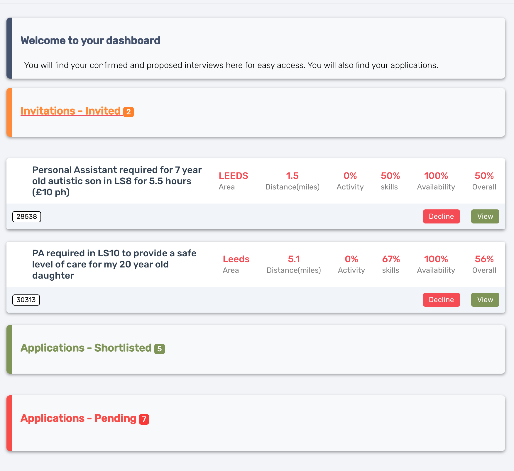 View the progress of your applications, easy to use interview details, with maps & video conferencing